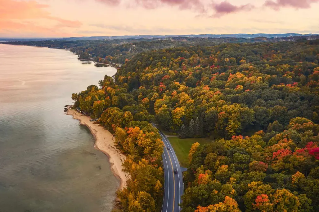 Hồ Michigan mùa thu mang vẻ đẹp lãng mạn khó cưỡng. Cùng người thương ngồi trên bãi cỏ, thưởng thức cà phê nóng và ngắm hoàng hôn buông xuống là khoảnh khắc khiến du khách nhớ mãi.