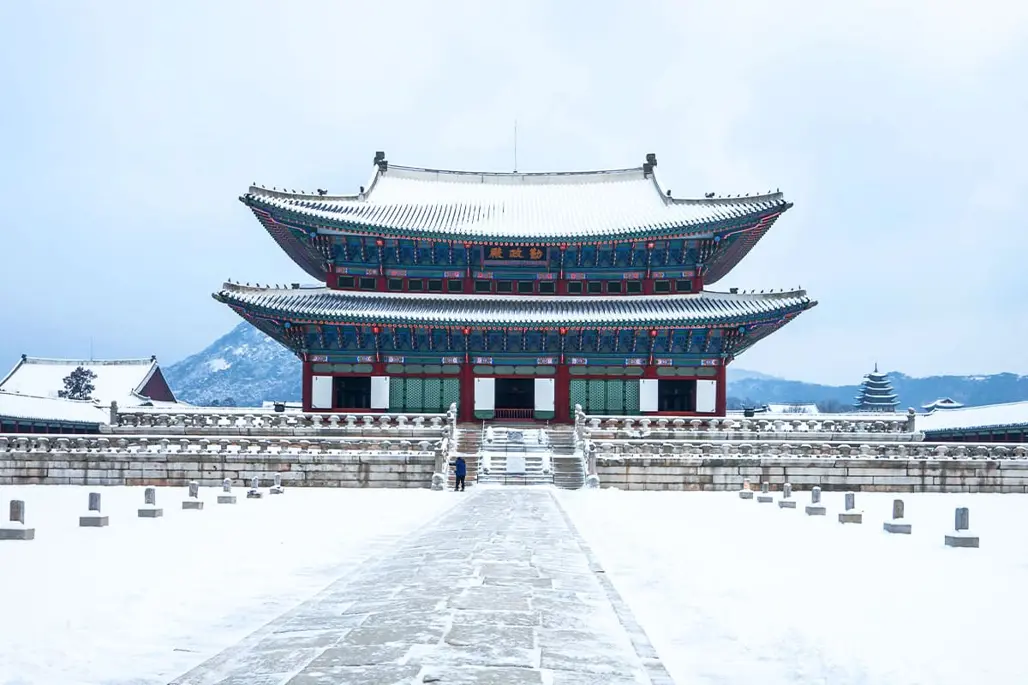 Cung điện Gyeongbokgung mùa đông không chỉ là biểu tượng lịch sử và văn hóa của Hàn Quốc, mà còn là điểm đến mang lại trải nghiệm khó quên cho du khách khi tuyết phủ trắng không gian cổ kính. Đây là nơi lý tưởng để bạn chiêm ngưỡng vẻ đẹp cung điện Hàn Quốc, săn tìm những bức ảnh đẹp Seoul và tận hưởng bầu không khí mùa đông đầy thi vị.