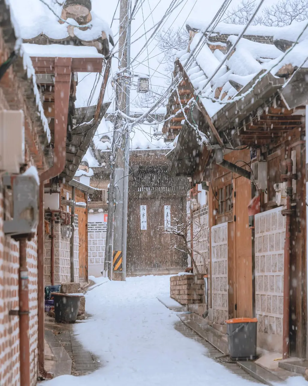 Vào mùa lạnh, khung cảnh nơi đây khoác lên vẻ huyền bí với mái ngói, cổng thành, sân vườn phủ tuyết trắng, tạo nên bức tranh vừa cổ kính vừa lãng mạn ngay giữa lòng Seoul.