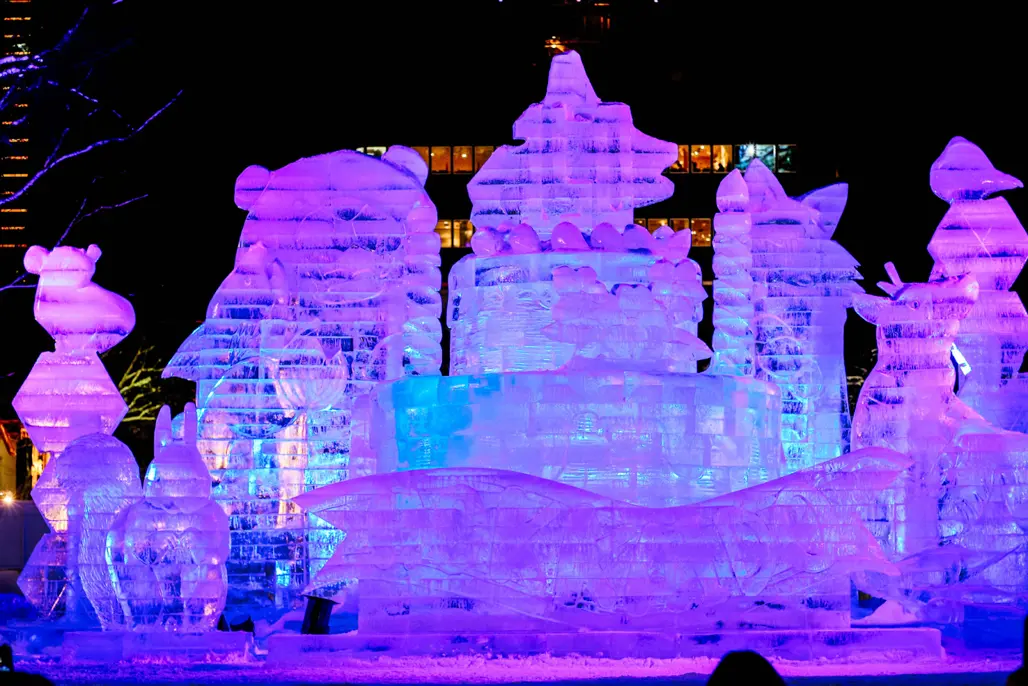 Chỉ cần đặt chân đến Sapporo trong dịp lễ hội tuyết, du khách đã ngay lập tức bị cuốn hút bởi vẻ đẹp lộng lẫy của các tác phẩm điêu khắc bằng tuyết và băng khổng lồ, cùng các hoạt động vui chơi sáng tạo bên cạnh. Mỗi công trình đều thể hiện sự tỉ mỉ, sáng tạo của các nghệ nhân từ khắp nơi trên thế giới, tạo thành một không gian nghệ thuật thực sự ngoạn mục và đầy ấn tượng.