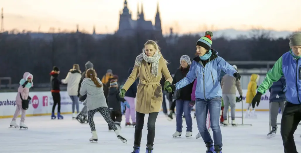 Không khí mùa đông khiến nhiều nơi trong thành phố mở cửa các sân trượt băng tự nhiên hoặc các công viên tuyết để mọi người vui chơi, thư giãn. Các công viên như Letná, Vyšehrad hay các khu vui chơi ngoài trời quanh trung tâm đều có các khu trượt băng nhỏ, phù hợp với mọi lứa tuổi. Trải nghiệm trượt băng giúp tăng thêm niềm vui, gắn kết các thành viên trong gia đình, bạn bè.
