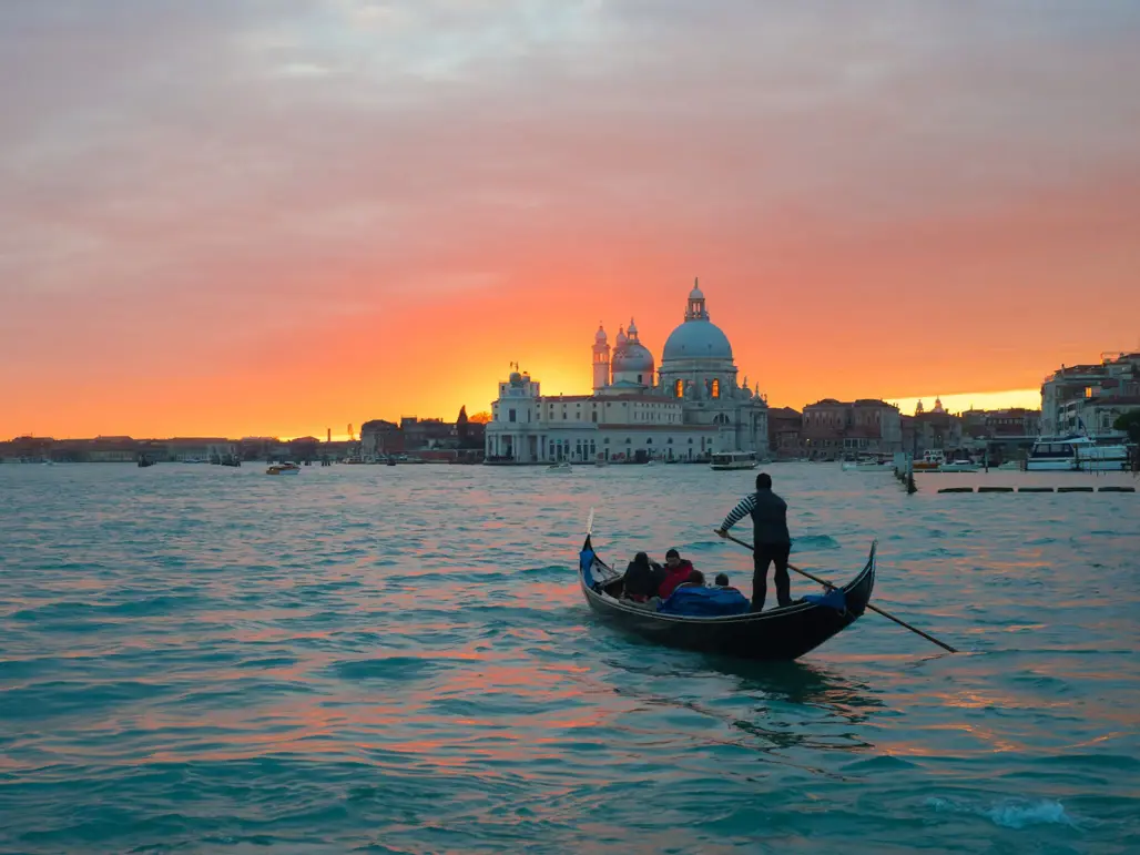 Một trong những trải nghiệm khó quên khi Venice mùa đông chính là ngắm cảnh hoàng hôn. Khi mặt trời lặn dần, ánh sáng vàng rực rỡ phản chiếu trên mặt nước lặng, tạo nên một khung cảnh thơ mộng đến nao lòng. Những chiếc gondola lững lờ trôi, dẫn du khách qua các con kênh, được hoàng hôn nhuộm màu vàng ấm áp, mang lại cảm giác thật bình yên, tĩnh tại giữa lòng thành phố cổ.