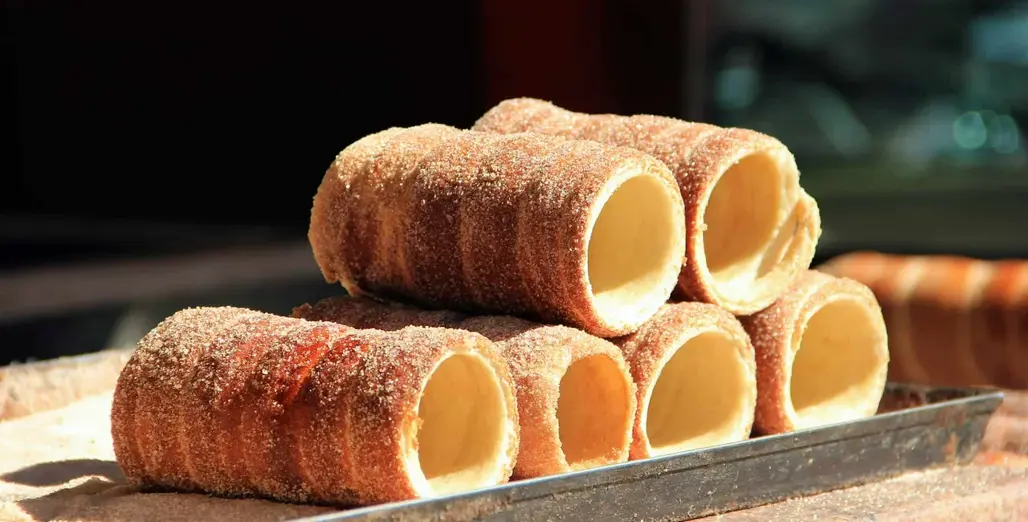 Các món ăn truyền thống của Séc là không thể thiếu trong trải nghiệm mùa lễ hội. Trdelník, bánh ống quế giòn rụm, thường được bán tại các quầy hàng nhỏ trên đường phố, vừa ngon vừa dễ mang đi. Bên cạnh đó, giò heo nướng vàng ươm, thơm lừng là món phổ biến trong các bữa tiệc đêm cuối năm, giúp giữ ấm và thưởng thức hương vị đặc trưng địa phương.