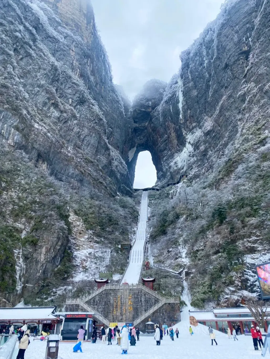 Thiên Môn Sơn là nơi có cảnh sắc hùng vĩ và những trải nghiệm không thể quên được trong du lịch Trương Gia Giới mùa đầu năm. Hình ảnh đoạn đường đi bộ trên đỉnh núi phủ tuyết, băng tuyết đan xen cùng mây mù trùng trùng điệp điệp, đem lại cảm giác như bước vào chốn thần tiên. Đứng từ đỉnh, du khách có thể tận mắt chứng kiến cảnh tượng mây trời hòa quyện, tựa như những câu chuyện trong các bộ phim cổ trang, khiến ai cũng cảm thấy nhỏ bé trước đại thiên nhiên bao la.
