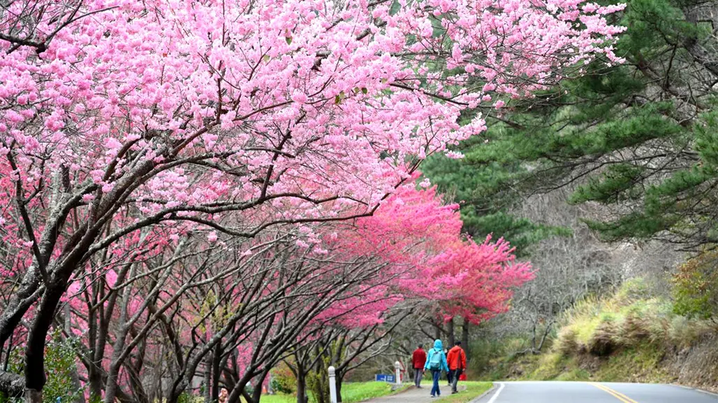 Một trong những điểm hút khách nhất của du lịch Đài Loan vào mùa xuân chính là mùa hoa anh đào. Các tỉnh như Nantou, Alishan, hoặc Taroko Gorge đều ngập tràn cảnh sắc thơ mộng với sắc hồng của hoa anh đào nở rộ. Thời điểm lý tưởng để tham quan là từ tháng 3 đến giữa tháng 4, khi mà những cây hoa đồng loạt bung nở, tạo thành tấm thảm màu hồng xen lẫn với không gian núi rừng xanh mướt.
