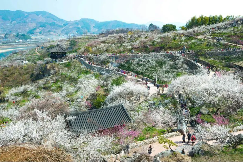 Tháng 3 chính là mùa của hoa mơ và hoa cải, hai loài hoa bắt đầu khoe sắc trên khắp các vùng đất của Hàn Quốc. Đặc biệt, hoa mơ thường nở sớm hơn, tạo nên khung cảnh tinh khiết, nhẹ nhàng đúng mùi mùa xuân. Những cánh đồng hoa cải vàng rực rỡ cũng bắt đầu rộ nở, làm phong phú thêm vẻ đẹp của thiên nhiên.
