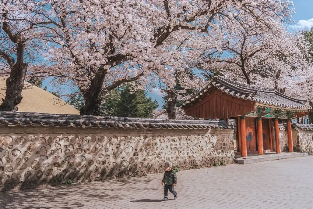 Gyeongju, từng là cố đô của triều đại Silla cổ xưa nổi tiếng với vẻ đẹp vừa cổ kính vừa lãng mạn. Mùa xuân là thời điểm lễ hội hoa anh đào diễn ra tại đây, thu hút đông đảo du khách trong và ngoài nước. Hàng nghìn cây anh đào cổ thụ nằm xen kẽ trong các di tích, công viên và các khu vườn cổ của Gyeongju tạo thành dải hoa tuyệt đẹp, mang đến cảm giác vừa cổ kính, vừa thơ mộng.