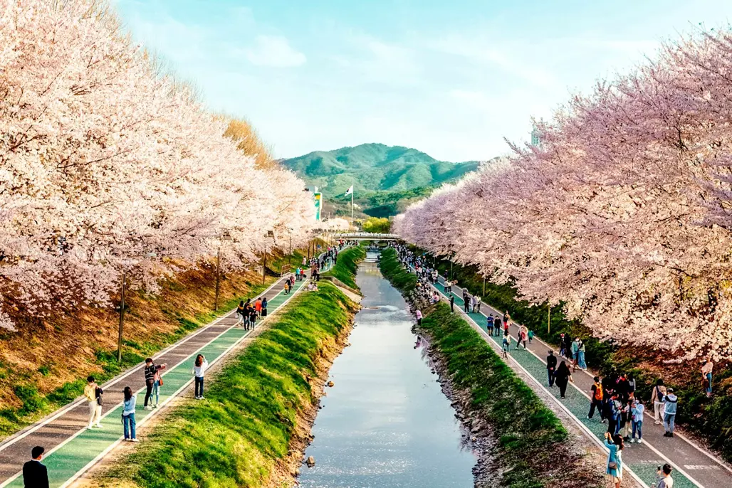 Lễ hội hoa anh đào Jinhae là một trong những lễ hội lớn nhất và nổi tiếng nhất tại Hàn Quốc, thu hút hàng triệu du khách mỗi năm. Diễn ra vào cuối tháng 3 đến đầu tháng 4, lễ hội này quy tụ hàng nghìn cây anh đào rực rỡ trải dài hai bên đường, chạy qua các con phố, công viên và bến cảng của thành phố Jinhae. Không khí lễ hội tràn ngập sắc hồng, hương hoa nhẹ nhàng làm say đắm lòng người.