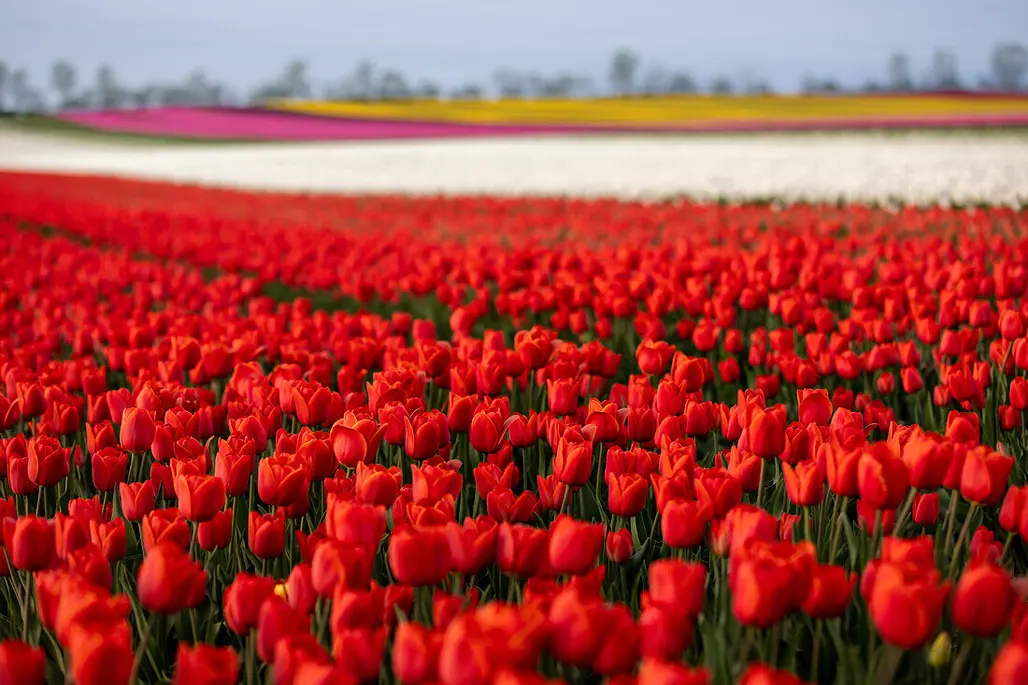 Hoa tulip thường nở rộ vào cuối tháng 3 đến giữa tháng 4, mang đến cảnh quan rực rỡ và sống động. Thời điểm này phù hợp với nhiều lịch trình du lịch, giúp du khách có thể thưởng thức trọn vẹn vẻ đẹp của những cánh đồng hoa rộng lớn. Không khí thời điểm này còn giúp bạn trải nghiệm không khí mùa xuân tràn đầy năng lượng, thoảng hương hoa thơm ngát khắp nơi.