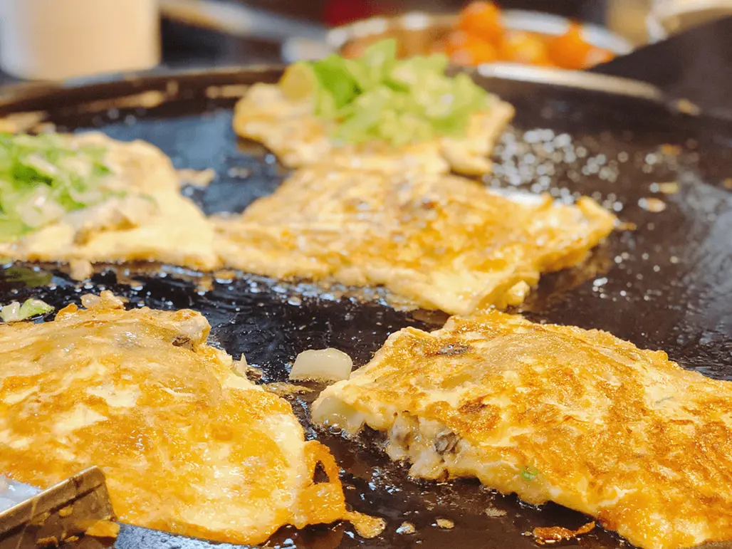 Thêm một món cực phổ biến và thường không thể thiếu trong các tour du lịch đến Đài Loan đó là trứng tráng hàu sữa, trứng được cho thêm hàu một ít rau thơm và mang đi chiên giòn. Ngoài ra, người ta còn cho thêm vào đó bột khoai tây/khoai môn để bánh có thêm độ dẻo. Miếng trứng màng tươi, kết hợp với những con hàu sữa béo ngậy và vị thanh ngọt của cải xanh là một hương vị mới là mà nhất định bạn phải thử khi ghé thăm xứ Đài.