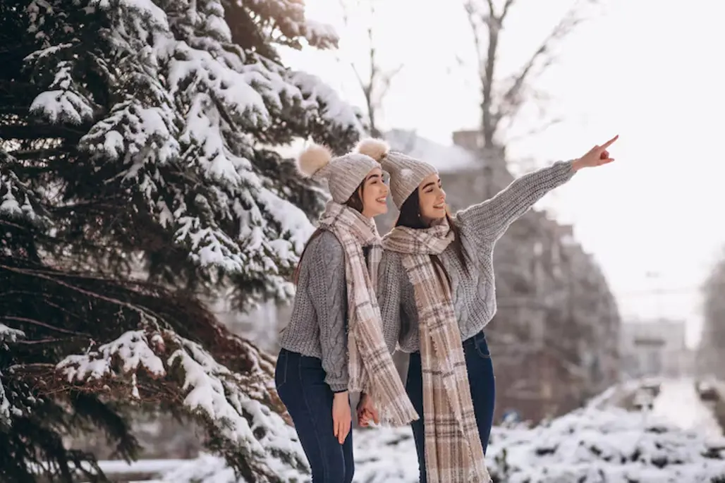 Tuyết trắng phủ khắp mọi nơi, tạo ra một lớp nền hoàn hảo để check-in mùa đông viral. Hình ảnh tuyết rơi hay tuyết phủ kín mặt đất, mái nhà, cây cối mang lại cảm giác sạch sẽ, tươi mới và rất dễ phối đồ, tạo nên các phối cảnh bắt mắt. Ngoài ra, các lễ hội như Giáng Sinh, Tết Dương Lịch, cùng các trang trí đèn, cây thông, quà tặng đều góp phần tô điểm, khiến bức ảnh của bạn trở nên rực rỡ, sinh động hơn bao giờ hết.