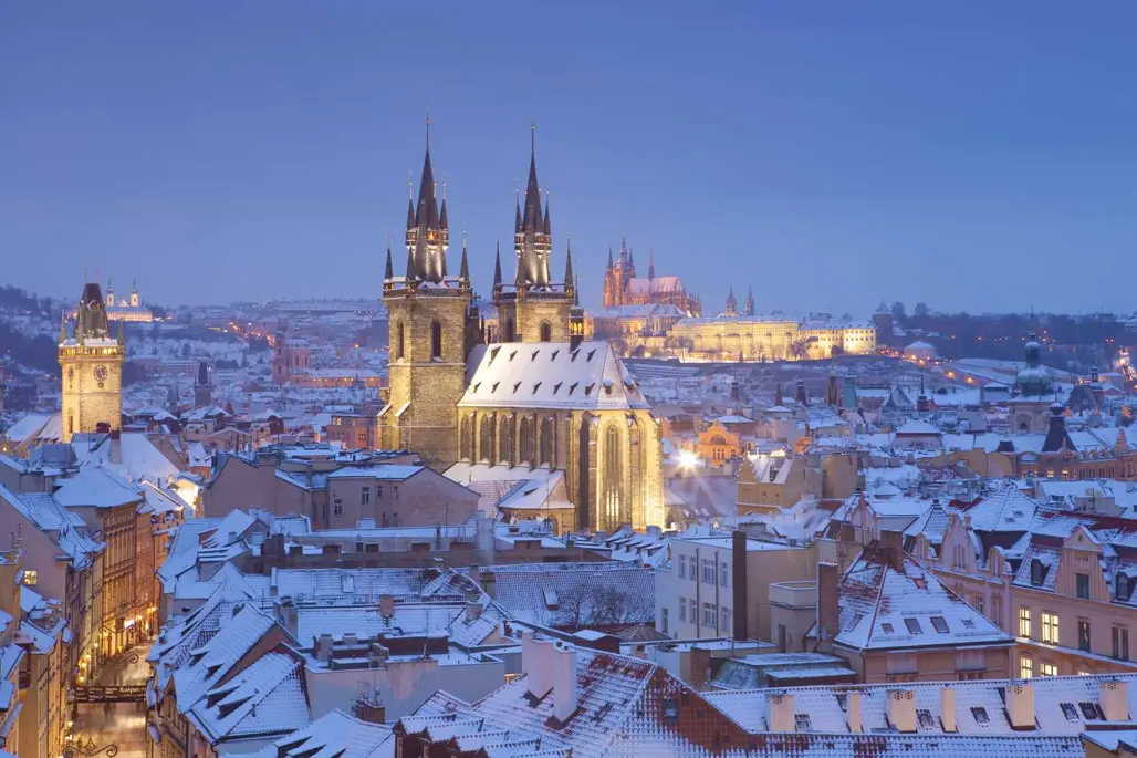 Prague luôn nằm trong danh sách những thành phố cổ tích, đặc biệt vào mùa đông khi khí hậu se lạnh, các công trình cổ kính phủ lớp áo tuyết mềm mại. Các phố cổ nhỏ hẹp, cầu Charles, lâu đài hoàng gia, quảng trường chính khu phố cổ đều trở thành điểm check-in tuyết lý tưởng, đẹp mê li mỗi độ đông về.