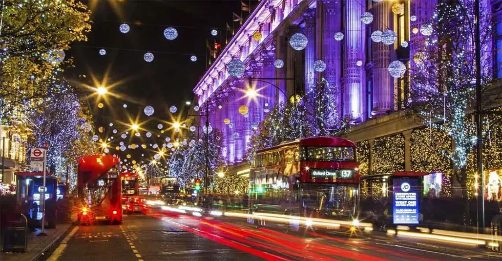 Không thể bỏ qua Oxford Street - trung tâm mua sắm lớn nhất London với trang trí lễ hội lộng lẫy, các cửa hàng mở cửa muộn, giảm giá lớn mùa sale cuối năm. Đây là nơi lý tưởng để thưởng thức không khí lễ hội, mua sắm và chụp hình kỷ niệm. Ngoài ra, một điểm đến không thể không ghé là Winter Wonderland - một công viên giải trí mùa đông tại Hyde Park, nơi có các trò chơi, chợ Giáng sinh, biểu diễn nghệ thuật, phù hợp để vui chơi và thưởng thức ẩm thực mùa lễ hội.