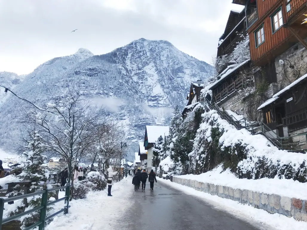 Là một trong những địa điểm check-in nổi bật nhất của du lịch Châu Âu, Hallstatt nổi bật với vẻ đẹp của mình trong mùa đông khi lớp cảnh đường tuyết phủ kín cảnh sắc cổ kính. Đặc biệt, con đường quanh hồ cổ tích này khiến mọi người như lạc vào một thế giới thần tiên, nơi những mái nhà mái ngói đỏ rực rỡ nổi bật trên nền trắng tinh khôi của tuyết.