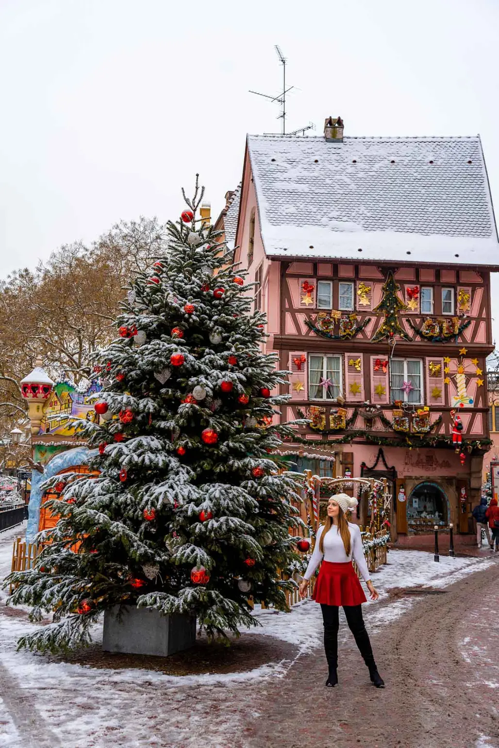 Các con đường nhỏ quanh thị trấn có những hàng cây giáng sinh trang hoàng lung linh, các cửa hàng trang trí đèn vàng rực, mọi thứ và phản chiếu trên lớp tuyết dày, làm bật lên vẻ đẹp rực rỡ và ấm cúng của mùa lễ hội. Đây là điểm check-in lý tưởng dành cho những du khách yêu thích chụp hình, vì mỗi góc nhỏ ở Colmar đều có thể trở thành bối cảnh tuyệt đẹp cho album ảnh của bạn.
