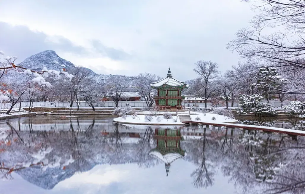Mùa đông phủ trắng khắp nơi, từ các con phố cổ, hàng cây đến tòa nhà cao tầng. Dãy núi Baekdusan phủ tuyết trắng hùng vĩ, các công viên như Namsan hay Hangang Park cũng trở nên lãng mạn, thích hợp để dạo chơi và chụp ảnh. Từ Seoul Tower hay Bukchon Hanok Village, du khách có thể quan sát toàn cảnh mùa đông với ánh sáng lung linh từ các lễ hội, tạo khung cảnh trữ tình và mê hoặc.