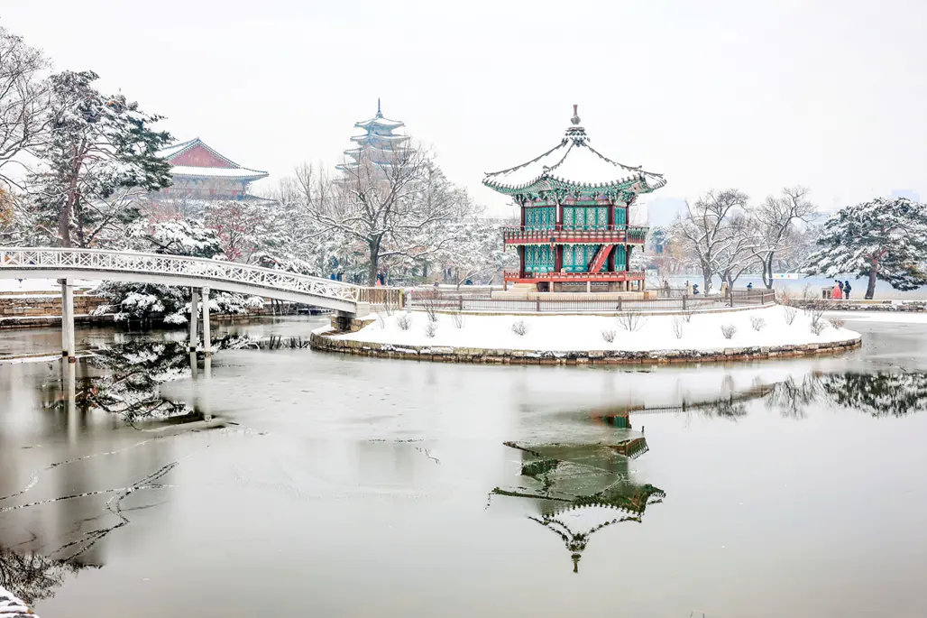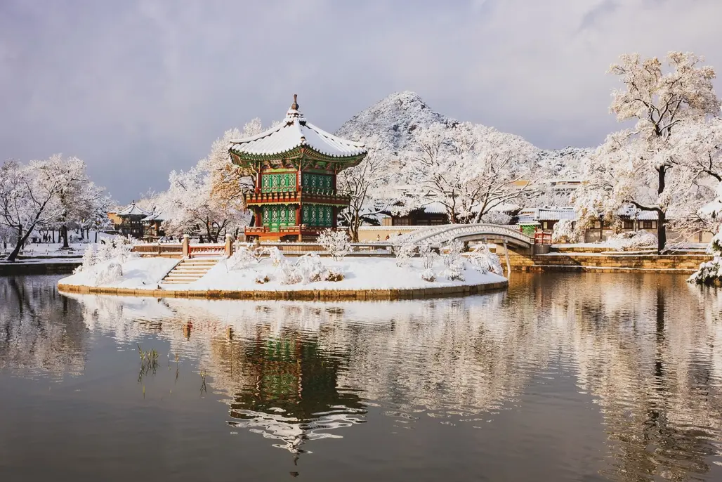 Cung điện Gyeongbokgung mùa đông không chỉ là biểu tượng lịch sử và văn hóa của Hàn Quốc, mà còn là điểm đến mang lại trải nghiệm khó quên cho du khách khi tuyết phủ trắng không gian cổ kính. Đây là nơi lý tưởng để bạn chiêm ngưỡng vẻ đẹp cung điện Hàn Quốc, săn tìm những bức ảnh đẹp Seoul và tận hưởng bầu không khí mùa đông đầy thi vị.