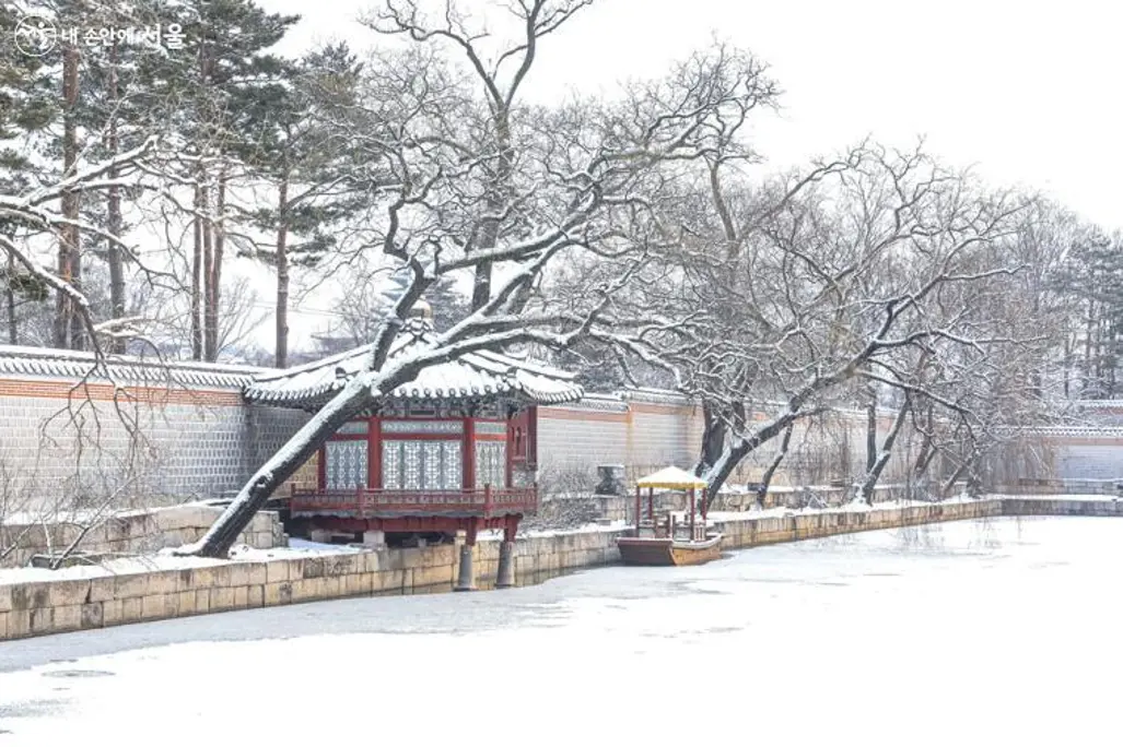 Vào mùa lạnh, khung cảnh nơi đây khoác lên vẻ huyền bí với mái ngói, cổng thành, sân vườn phủ tuyết trắng, tạo nên bức tranh vừa cổ kính vừa lãng mạn ngay giữa lòng Seoul.