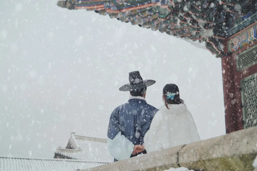 Một trải nghiệm không thể thiếu là khoác lên mình bộ Hanbok truyền thống. Trong tiết trời se lạnh, sắc màu rực rỡ của trang phục nổi bật giữa nền tuyết trắng và kiến trúc cổ, tạo nên bức tranh vừa hoài niệm vừa lãng mạn.