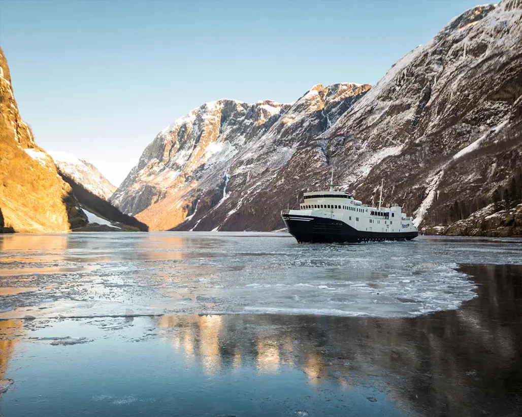 Một trong những trải nghiệm không thể bỏ lỡ khi đến làng Flam Na Uy chính là du thuyền để ngắm vịnh hẹp từ dưới nước. Du thuyền rẽ sóng ngược dòng chảy của vịnh Sognefjord thơ mộng, đưa du khách lạc vào thế giới của những tảng đá khổng lồ, những rặng núi quanh năm phủ tuyết, hay những cánh rừng nguyên sinh rực rỡ màu sắc của mùa thu. Mặt nước yên bình phản chiếu khung cảnh xung quanh như một tấm gương khổng lồ, làm tăng thêm vẻ đẹp của cảnh vật và tạo cảm giác thư thái, tĩnh lặng vô cùng.