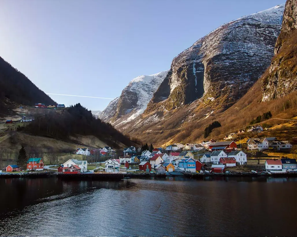 Nằm ở phía tây nam Na Uy, giữa vịnh hẹp Aurlandsfjord, có một ngôi làng nhỏ ẩn mình trong khung cảnh thiên nhiên hùng vĩ. Được bao quanh bởi núi non trùng điệp, thác nước trắng xóa và mặt vịnh xanh ngọc, nơi đây vẫn giữ nguyên vẻ yên bình và truyền thống vốn có. Với hệ sinh thái đa dạng, khí hậu mát mẻ dễ chịu, ngôi làng trở thành điểm dừng chân hoàn hảo cho những ai yêu thích khám phá thiên nhiên và muốn tìm về sự giản dị.