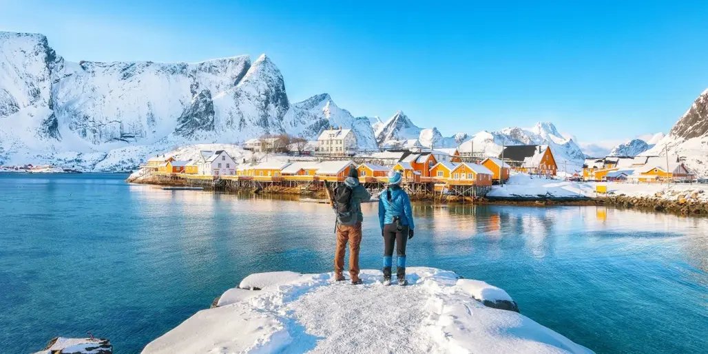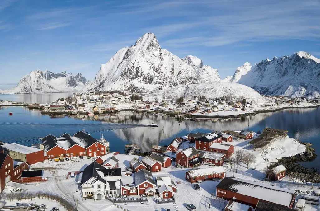 Nằm ở phía Bắc Na Uy, quần đảo Lofoten là thiên đường mùa đông dành cho các nhiếp ảnh gia và người yêu cái đẹp. Với những ngôi nhà đỏ rorbu nằm bên vịnh băng, làng chài cổ ẩn mình dưới tuyết, và bầu trời ngập tràn dải ngân hà, nơi đây là giấc mơ của bất kỳ ai mê nhiếp ảnh du lịch.