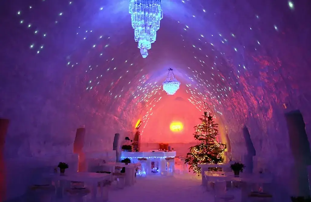 Dù nằm ngoài khu vực Châu Âu, ta vẫn không thể bỏ qua Hôtel de Glace ở Quebec, Canada – một trong những khách sạn băng đẹp nhất thế giới. Với hơn hai thập kỷ xây dựng, khách sạn này trở thành biểu tượng của sự sáng tạo trong nghệ thuật mùa đông, thu hút du khách từ khắp nơi và đem lại cảm xúc đầy thử thách.