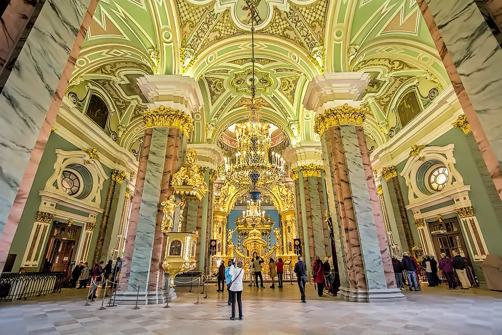 Nhà thờ Thánh Peter và Paul nằm trong khuôn viên pháo đài Petro Pavlov, là công trình kiến trúc tôn giáo mang đậm dấu ấn nghệ thuật Baroque. Thánh đường này không chỉ là nơi thờ cúng, mà còn là nơi an nghỉ của nhiều nhân vật lịch sử nổi bật của Nga, từ các Sa Hoàng cho đến các nhà cách mạng. Nét đặc trưng nổi bật nhất của nhà thờ chính là mái nhọn mạ vàng cao 122,5 mét, trở thành biểu tượng đặc trưng của đảo Thỏ Saint Petersburg.