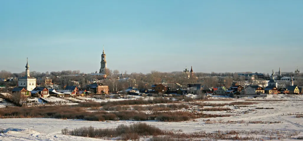 Suzdal mang đậm kiến trúc Nga từ thế kỷ 12, trở nên thơ mộng với mái nhà gỗ phủ tuyết và các nhà thờ đá cổ kính. Mùa đông, không khí yên bình nơi đây khiến du khách cảm giác như thời gian ngừng trôi. Đi bộ quanh làng, thăm các nhà thờ cổ, thưởng thức món ăn truyền thống trong những căn nhà ấm áp sẽ mang đến trải nghiệm khó quên, đậm chất cổ điển và lãng mạn.