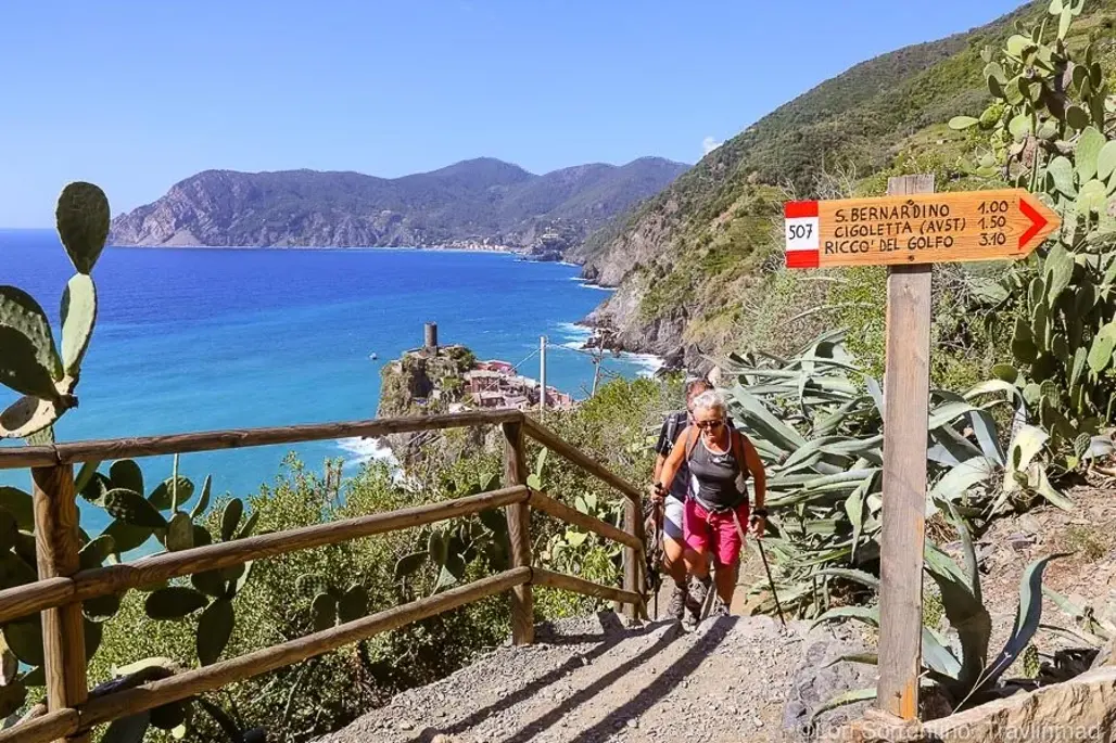 Ngoài tàu, hệ thống đường mòn đi bộ, hiking quanh làng cũng rất nổi tiếng, đặc biệt dành cho những người yêu thích trải nghiệm trực tiếp, chân thực hơn. Du khách có thể đi bộ qua các con đường đá nhỏ, đợi chờ để ngắm toàn bộ tầm nhìn của làng nhỏ xinh bên biển, hoặc khám phá các vườn nho, vườn oliu truyền thống của địa phương. Mặc dù đòi hỏi nhiều thể lực hơn, nhưng đây là cách tuyệt vời để hòa mình vào nhịp sống của cư dân địa phương và cảm nhận vẻ đẹp tự nhiên của vùng đất này.
