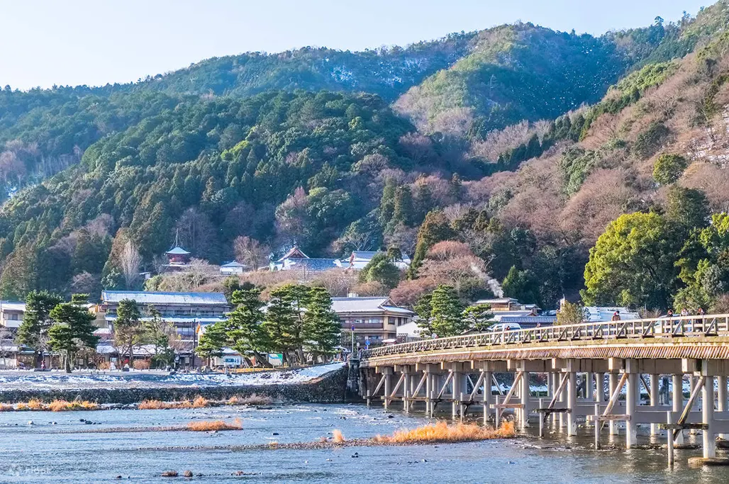 Cầu Togetsukyo từ lâu đã trở thành biểu tượng nổi bật của Arashiyama Kyoto, không chỉ vì kiến trúc đẹp mắt mà còn bởi ý nghĩa lịch sử sâu sắc. Đến với nơi này trong mùa đông, bạn sẽ cảm nhận rõ nét vẻ đẹp giao hòa của thiên nhiên, núi non, nước và ánh sáng đầu xuân nhẹ nhàng, thư thái.