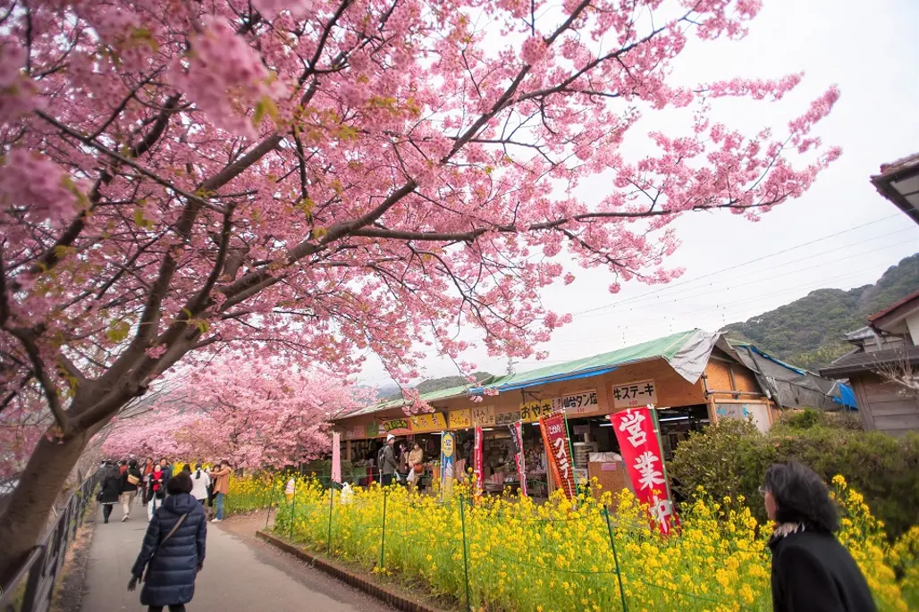 Ngoài cảnh đẹp rực rỡ của hàng nghìn cây sakura, Kawazu còn tổ chức lễ hội hoa anh đào nổi bật, thu hút hàng ngàn du khách quốc tế mỗi năm. Điểm độc đáo của Kawazu không chỉ là cảnh quan tuyệt đẹp, mà còn là cơ hội để trải nghiệm cuộc sống đời thường, thưởng thức ẩm thực địa phương và chinh phục các con đường ven biển thơ mộng.