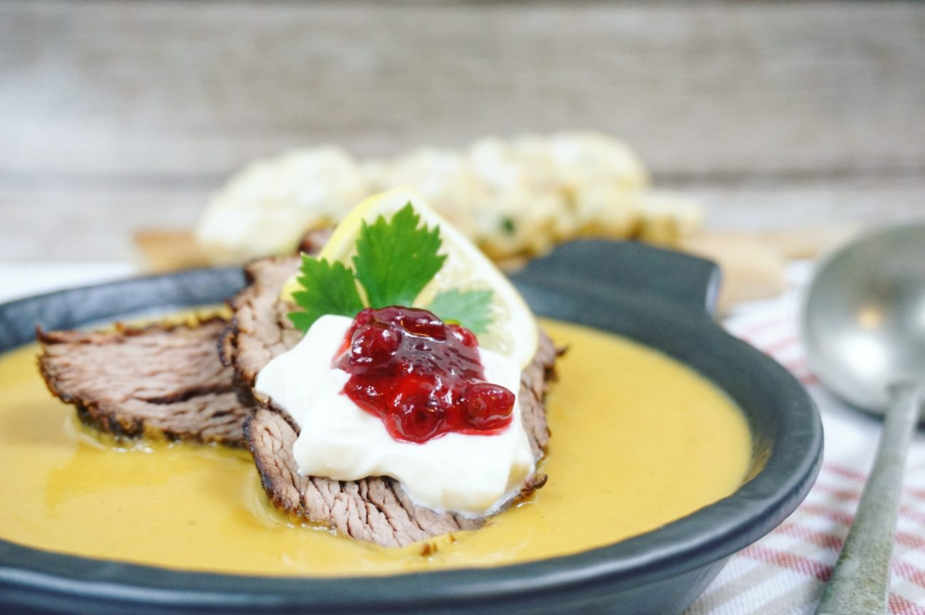Svíčková là món ăn sang trọng nhưng đậm đà, thể hiện rõ nét vẻ đẹp của ẩm thực Cộng hòa Séc. Món chính gồm phần thịt bò mềm mại, được ướp chế biến kỹ lưỡng, ăn kèm với sốt kem bạc hà hoặc sốt kem cà rốt, tạo nên sự hòa quyện hài hòa về màu sắc và hương vị. Thường đi cùng với bánh mì hoặc bánh quẩy, món này phù hợp với những bữa tiệc trang trọng hay công cuộc thưởng thức ẩm thực tinh tế.