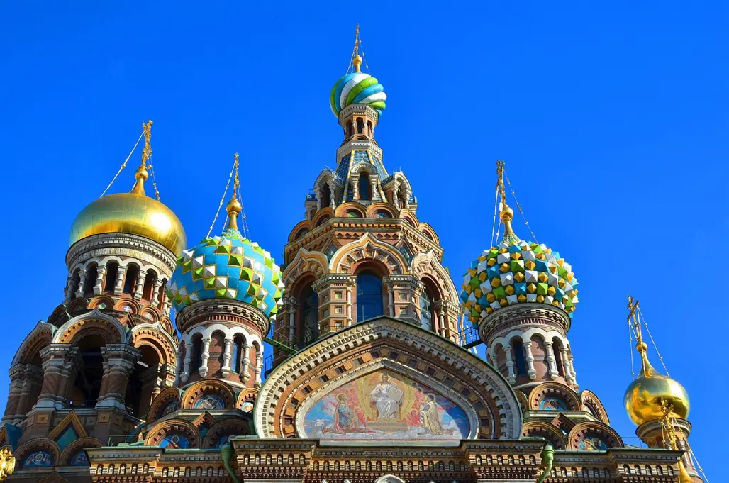 Nhà thờ Cứu Chúa trên Máu Đổ (Savior on Spilled Blood) không chỉ nổi tiếng vì kiến trúc, mà còn mang ý nghĩa tưởng niệm rất đặc biệt. Về kiến trúc, nhà thờ là điểm khác biệt rõ rệt so với phong cách Baroque/Neoclassical phổ biến của thành phố. Công trình theo Russian Revival (phục hưng Nga), chủ ý gợi lại tinh thần kiến trúc Nga trung cổ, thường được so sánh với St. Basil’s ở Moscow: mái vòm hành tây, men màu rực rỡ, bố cục giàu trang trí và chi tiết dày đặc. Bên trong, điểm “đỉnh” nằm ở hệ tranh khảm mosaic phủ gần như toàn bộ nội thất, với tổng diện tích khoảng 7.065 m², biến nơi đây thành “bảo tàng mosaic” đúng nghĩa.