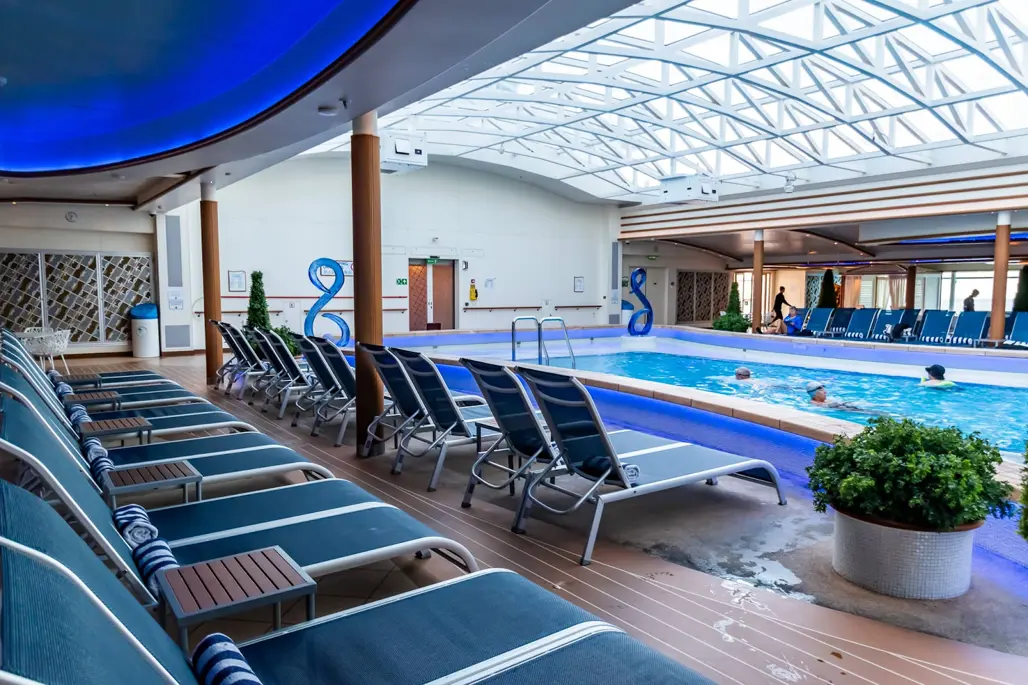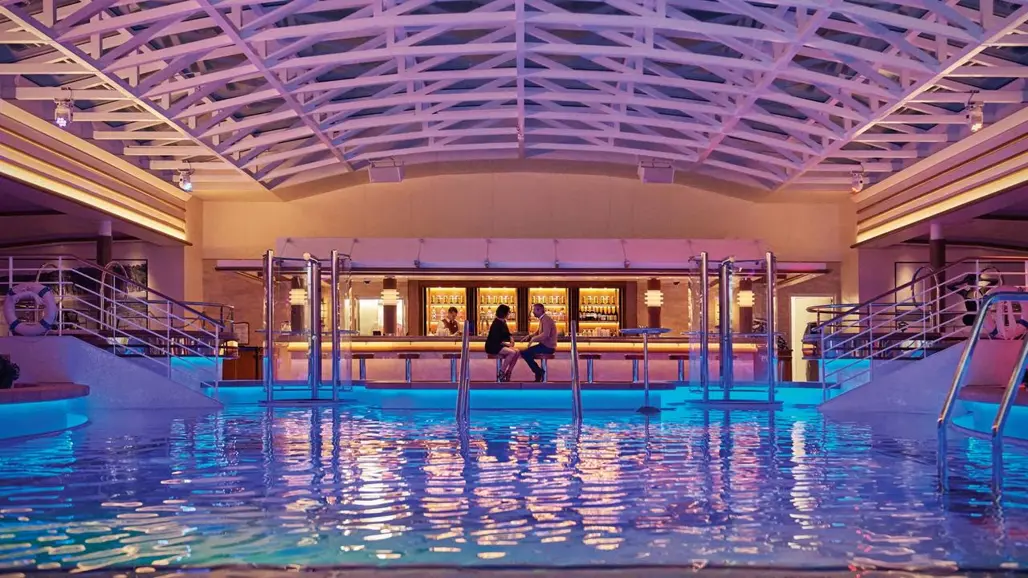 Một trong những không gian thư giãn được yêu thích nhất trên Royal Princess cruise chính là Hollywood Pool Club Royal Princess - hồ bơi trong nhà sang trọng nằm giữa trung tâm du thuyền. Với mái vòm kính hiện đại, không gian rộng rãi cùng bầu không khí thư giãn, nơi đây mang đến trải nghiệm nghỉ dưỡng độc đáo giữa đại dương.