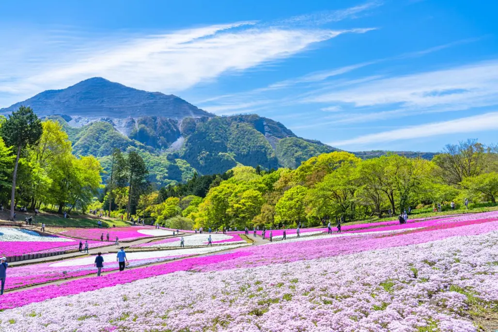 Nếu muốn tránh xa đám đông nhưng vẫn muốn thưởng ngoạn vẻ đẹp của hoa chi anh Nhật Bản, Hitsujiyama Park ở Chichibu là điểm đến lý tưởng. Chỉ cách Tokyo khoảng 1-2 giờ lái xe, công viên này nổi bật bởi cánh đồng hoa rộng lớn, xen lẫn các loại hoa như shibazakura, tulip, cúc họa mi trong cùng một khung cảnh thanh bình và đầy màu sắc.