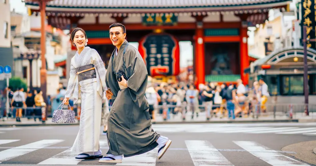 Một trong những trải nghiệm hấp dẫn nhất khi du lịch Asakusa Tết chính là khoác lên mình bộ kimono truyền thống để dạo chơi quanh phố cổ. Không khí xuân trong trẻo, dịu dàng kết hợp với vẻ đẹp truyền thống được tôn vinh qua bộ kimono giúp du khách cảm nhận rõ nét nét đẹp của văn hóa Nhật Bản. Những bức hình chụp trong khung cảnh cổ kính, dưới hàng cây anh đào nở rộ hay bên cạnh các ngôi đền cổ, vừa lãng mạn vừa thiêng liêng, khiến chuyến đi của bạn càng thêm phần đặc biệt.