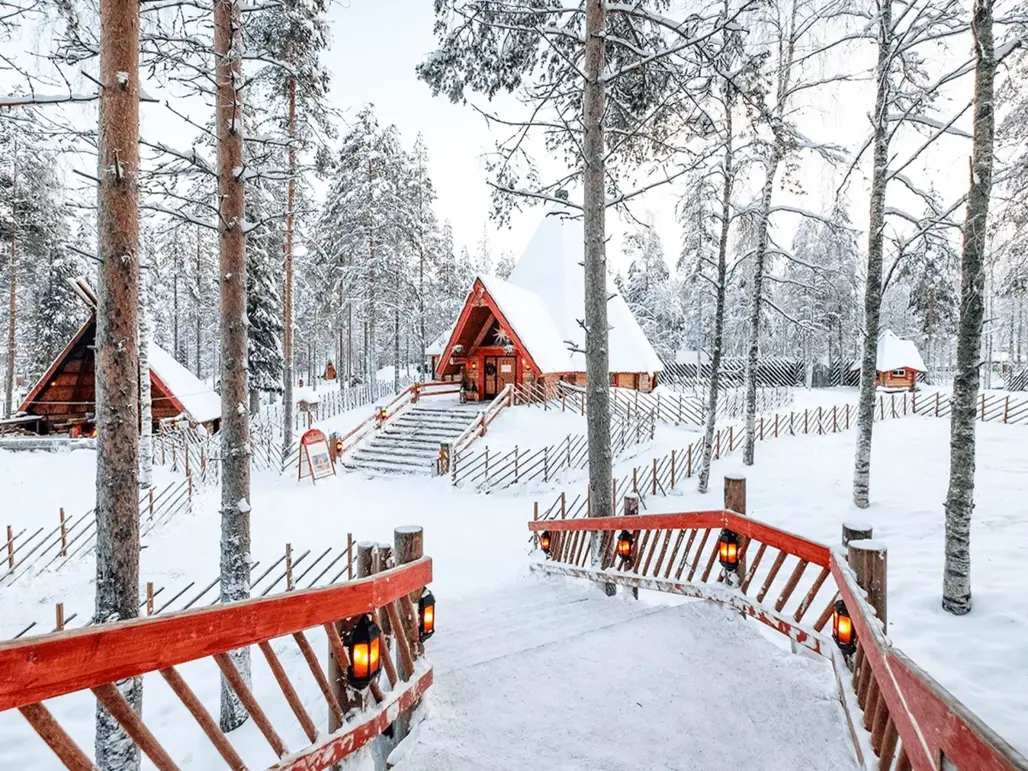 Làng Saariselka ở Phần Lan đã trở thành điểm đến mùa đông chính cho những trải nghiệm Giáng sinh, chuyến đi săn bằng xe trượt tuyết do chó kéo, câu cá trên băng, trượt tuyết và ngắm cực quang.